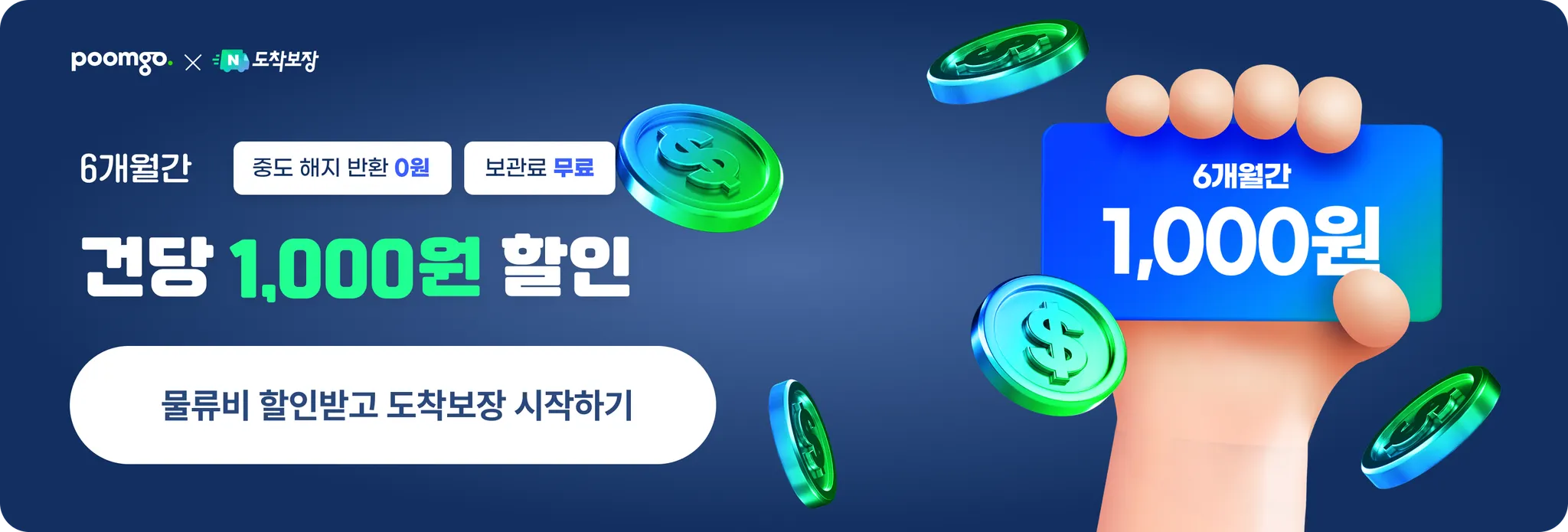 [네이버 도착보장] 품고 2차 프로모션, 6개월 간 건당 1천 원 할인, 보관료와 중도해지 반환금 0원 혜택까지!